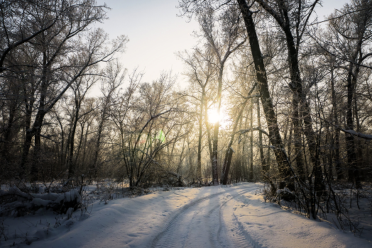 Роща черных тополей зимой.