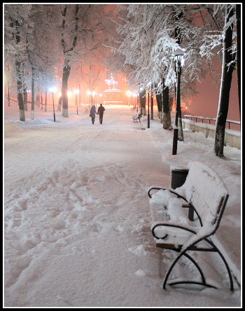 Мягкий густой снег таял на жарких губах от первых поцелуев на заснеженной скамейке, и я пожалел, что вспугнул первую, гулко стучащую в груди страсть ... Приятных воспоминаний о первой любви...