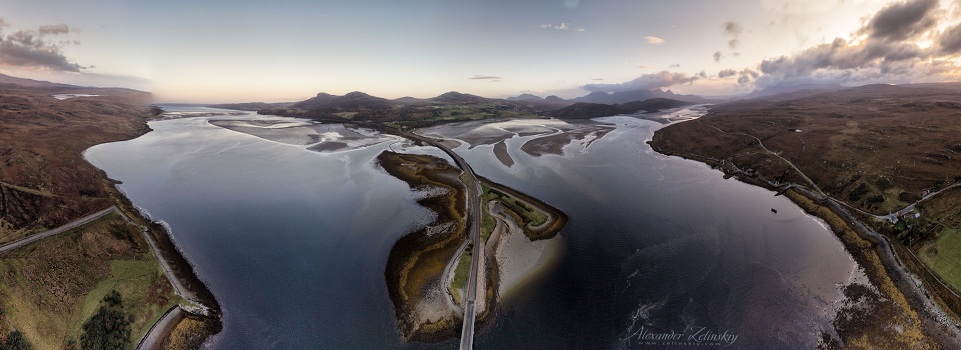 Панорама, снятая дроном. Северная Шотландия (Kyle of Tongue & Ben Loyal Mountain).