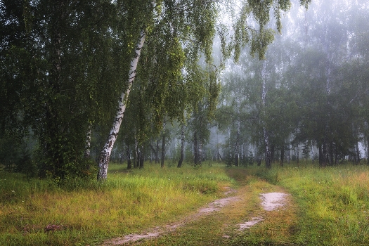 Тропинка сквозь утренний лес.