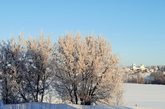 Иней и снег украсили пейзаж.