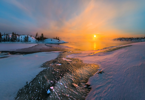 Вернулся с творческой поездки на Ладогу. В поездке изучал новые маршруты для своих авторских фототуров. Удачную погоду ждал почти месяц, следя за прогнозами погоды и ледовой обстановкой на озере. Погода в этих краях очень редко бывает солнечная, но если быть готовым в любой момент выехать на фотосъёмку, если терпеливо ждать погоду, то Ладога всегда дарит волшебный миг. Она дарит золотой рассвет в туманной дымке. Дарит композиции из льда, снега и воды. Дарит сам пейзаж с островами, с настроением севера. Только от фотохудожника зависит оказаться в нужном месте, в нужное время. Карелия. Ладожское озеро. 23 января, 2018 год. Приглашаю на зимние фототуры по Ладоге с проживанием в коттедже. Тур провожу только тогда, когда есть прогноз на удачную погоду.