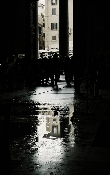 Незабываемое зрелище, когда сквозь отверстие купола Пантеона на выглаженные тысячами ног мраморные плиты храма льются струи дождя. Пантеон - храм всех богов и помолившись, можно вызвать дождь. Так нам сказали. Оказалось - правда! Но интереснее, что налюбовавшись дождем сполна и попросив вторично, можно дождь прекратить. Потому что и за стенами Пантеона Рим прекрасен, а время не ждет... :)