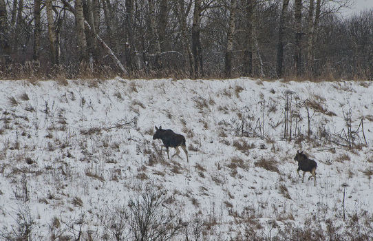 Лосиха с лосёнком. Россия. Тульская область. Ленинский район. Архангельское.