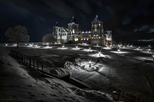 Суровая зимняя ночь во всём Мире. :) Ночное ЗИМНЕЕ фото ЛЕТНЕЙ резиденции князей Радзивиллов в Мирском замке