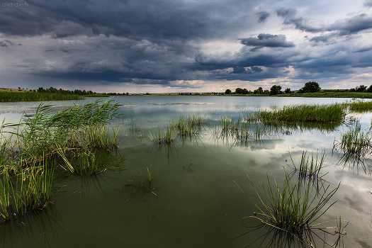 Два белых лебедя вдали