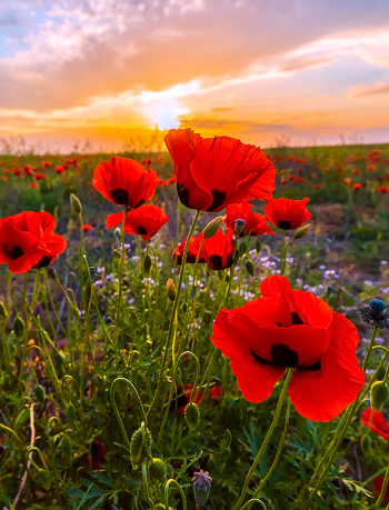 Цветущий закат в степи. Маки. Астраханская степь. Май, 2017.