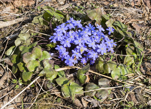 Эти цветы по весне не являются невидалью, но в обрамлении листьев выглядят законченной клумбой.