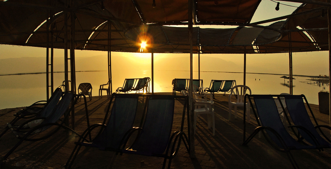 Мёртвый сезон сидит у Мёртвого моря в выцветшем бледно - синем шезлонге.
