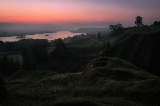 Рассвет в есенинском Константиново на высоком берегу Оки.