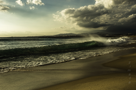 море, закат, волны, ветер