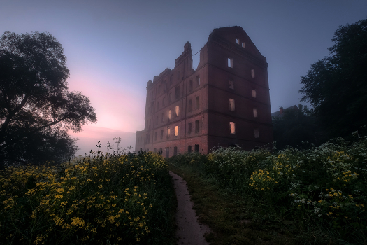 Ночь на исходе. Старая мельница в Юрятино разрушенная во время Второй мировой.