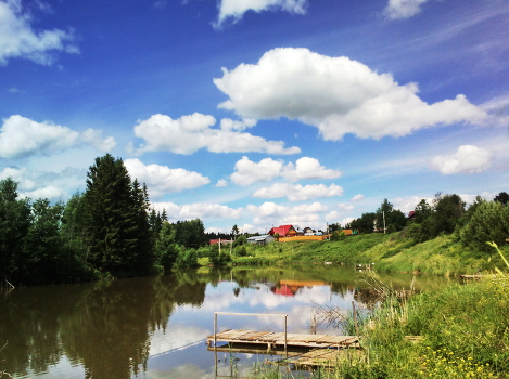 на пруду.