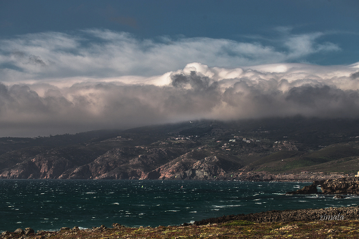 небо, облака, горы, море, берег