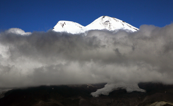 Вид на Эльбрус с вершины Чегет. Кавказ. Приэльбрусье. 14-е августа 2018