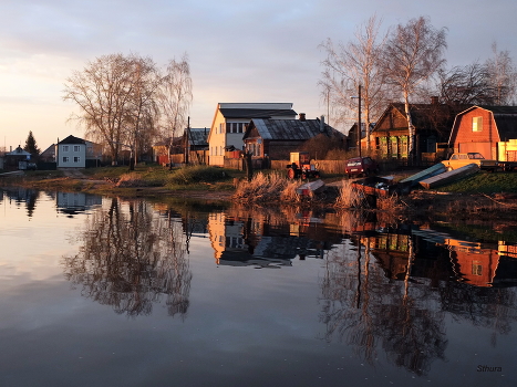 Разлив на Оке. Вода у посёлка.