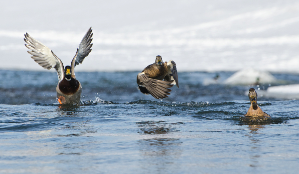 Утки кряквы. Россия. Тула. Река Упа.