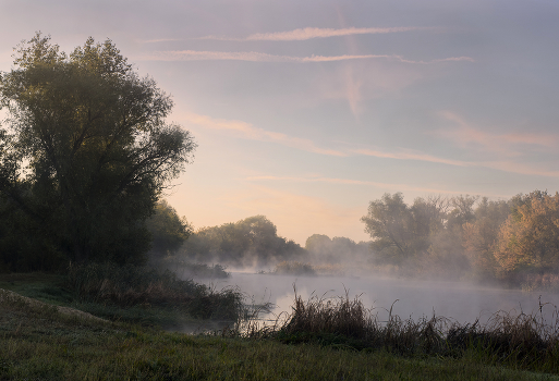 Утро,туман,река