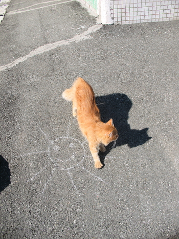 Солнце, кот и его тень.