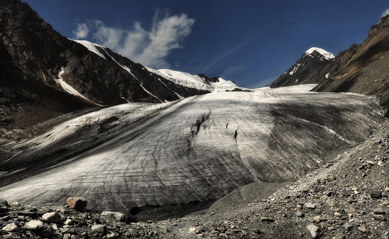 Большой Актру – это основной ледник, занимающий площадь около 10 кв. км Максимальная мощность льда на Алтае местами достигает толщи до 360 метров .