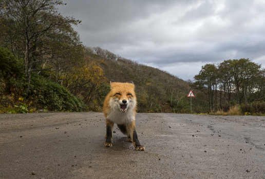 Лиса на лесной дороге. Остров Итуруп.