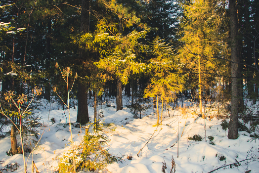 На закате дня в лесу.