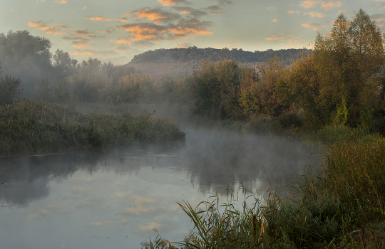 туман,река,