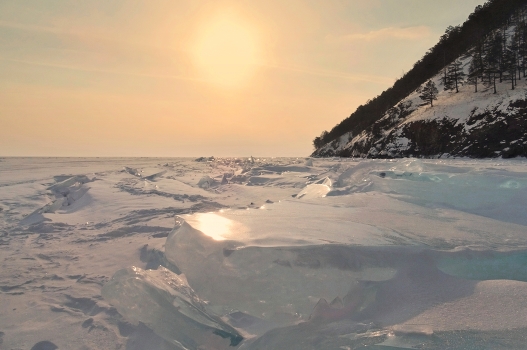 Морозный зимний день на Байкале заканчивается