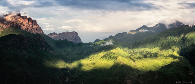 Чуть разбавлю зиму, горным летом ). Точнее весной, в июне самый разгар, все цветет. Зелень очень яркая и насыщенная. Сочетание вершин, кое-где покрытых снегом и ледниками и цветущих склонов и ущелий, выглядит необычно и очень красиво! А ты потихоньку взбираешься на один из самых не простых перевалов, доступных для авто, перевал Курноят (Школьный). На другой стороне ущелья, играет красками и светом, солнце. Где то внизу, селение Верхняя Балкария, расположенное в Черекском ущелье, КБР. Видами можно наслаждаться бесконечно, но скоро закат и надо определиться с ночлегом. Завтра, тоже предстоит интересный день...