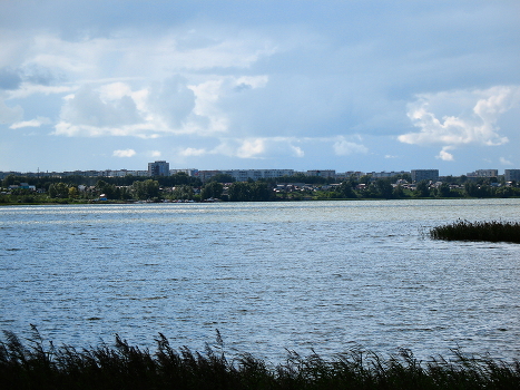 за рекой родной город.