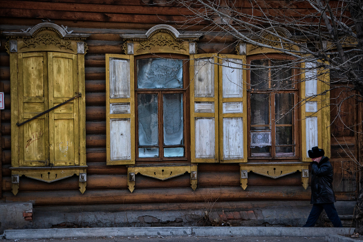 Дом с окнами в Чите и прохожий