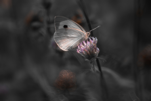 На сером фоне, про бабочку и клевер.