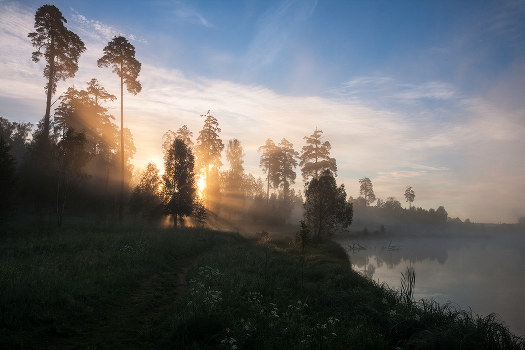 утро, туман, свет