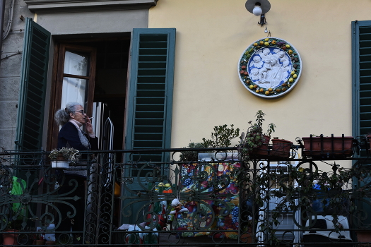Привлекла внимание курящая сеньора на сочно декорированном балконе.