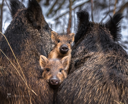 Мамы отдыхают, прижавшись боком друг к другу. А месячные поросята, которые, видимо часто вот так, залезают в тёплое местечко, чтобы греться, с любопытством но настороже, наблюдают за мною, охраняют покой мам. Стоит немного шевельнуться – маленькие охранники сразу, тревожным хрюканьем, подают сигналы взрослым.