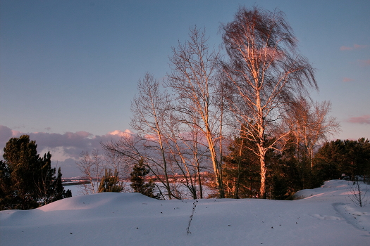 На закате.