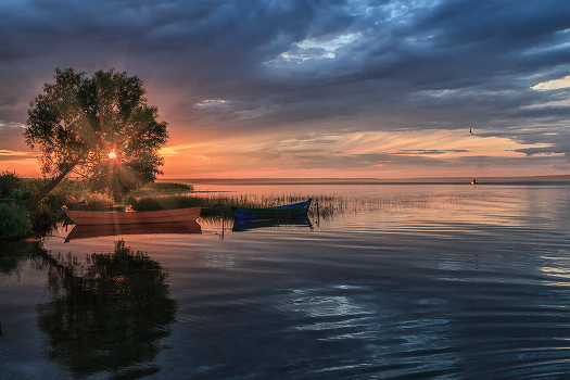 Плещеево озеро,закат,лодки