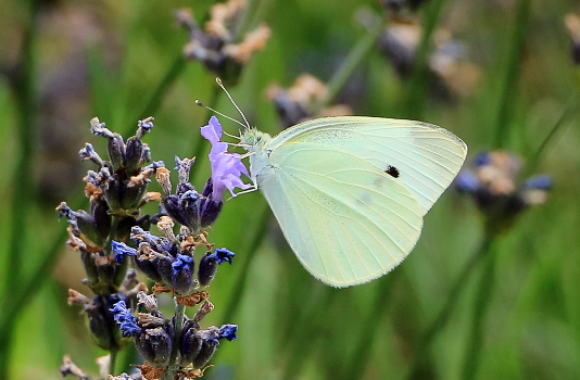 Капустница на огрызках лаванды