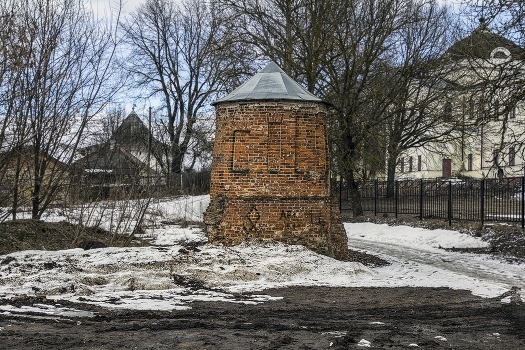 Вязьма.Монастырская башня. Слева, вдали - Спасская башня крепости.