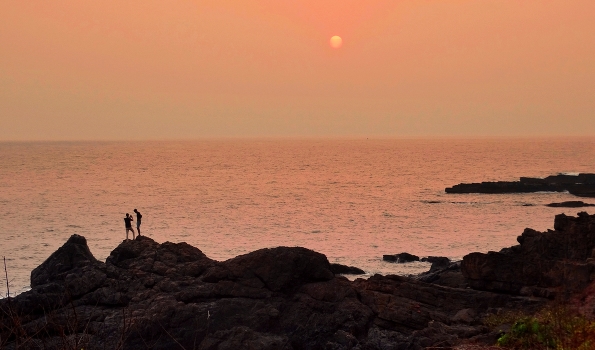 Закат над морем тает в дымке И розовеющими красками манит, Раскрасив небо, как картинку В палитре красок скал гранит