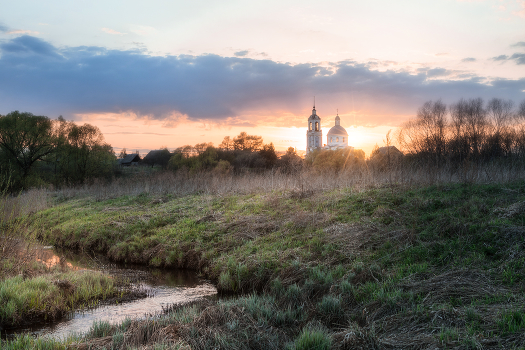 Село Красное, река Трубеж, закат, Вознесенская Церковь