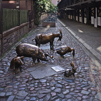 Скульптурная композиция «Животные на убой». Закоулок на месте старинных мясных рядов. Не одну сотню лет именно здесь на протяжении всего дня забивали и разделывали животных...