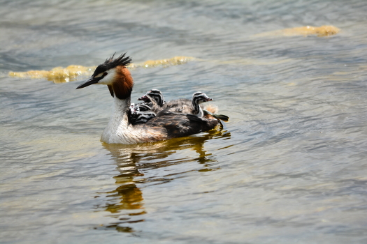 Чомга с утятами на спине.