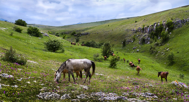 На выпасе.