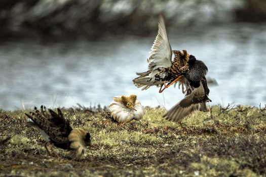 Брачные бои куликов-турухтанов. ЯНАО, начало лета.