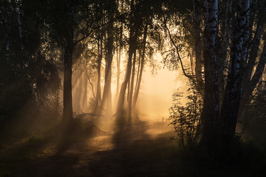 утро, туман, свет