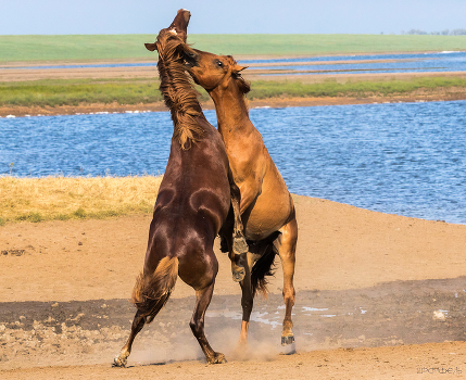 Битва жеребцов-мустангов за лидерство в косяке