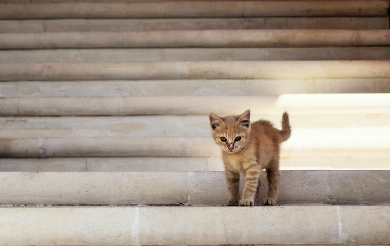Маленький котенок возник из ниоткуда. Услышала его мяуканье, оглянулась, он сразу подбежал и не отставал ни на шаг. Зашли с ним в монастырь, он там осмелел, стал бегать и резвиться, но далеко не убегал, возвращался. Что с ним делать-то? Постепенно он освоился и пошел по своим делам. Оставила его в монастыре, надеясь, что голодным не останется. Там много кошек,и их любят. Может, кто-нибудь из прихожан заберет.