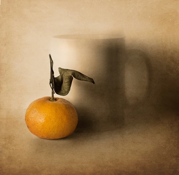 с кружкой и мандарином