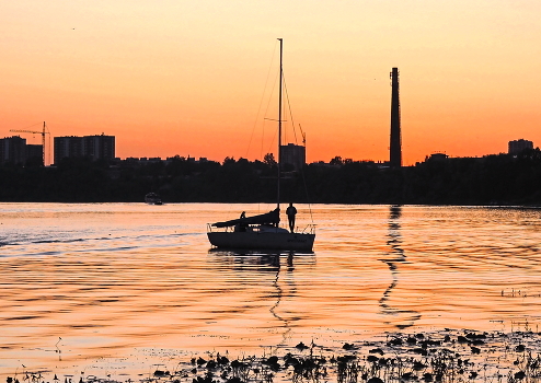 Вечер золотой над рекой плывёт.
